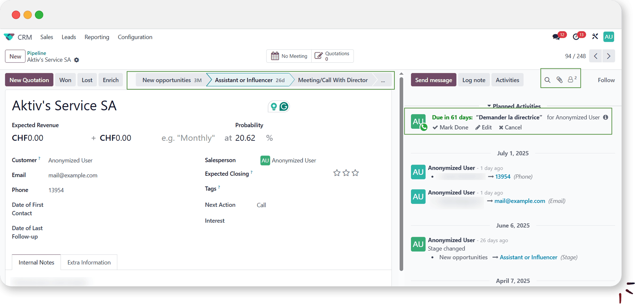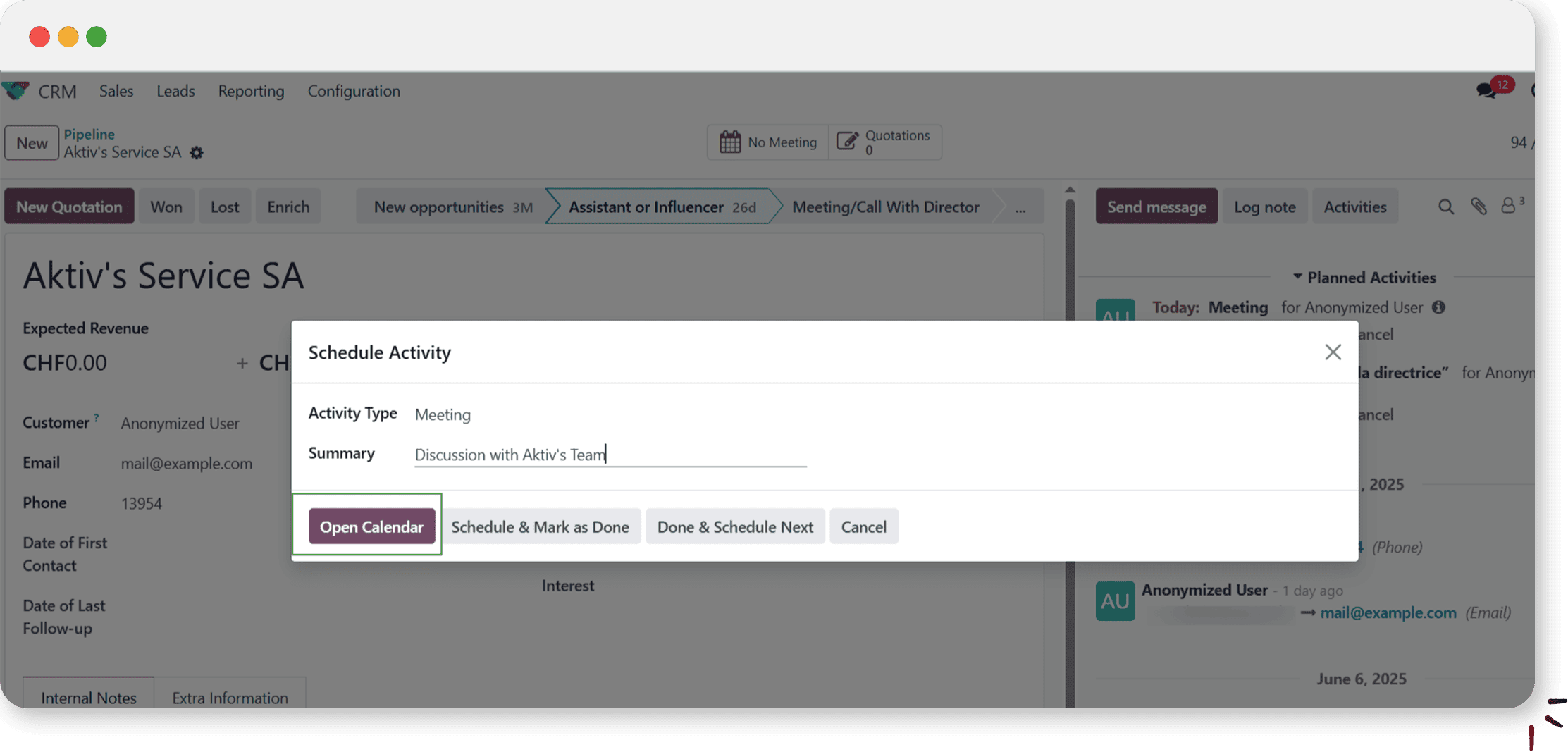 Start with Odoo’s built-in CRM to capture and track potential clients.